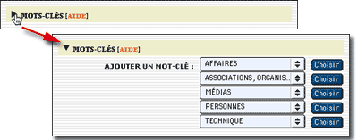 La présentation des mots-clés se fait désormais selon plusieurs menus déroulants, par groupes de mots-clés.